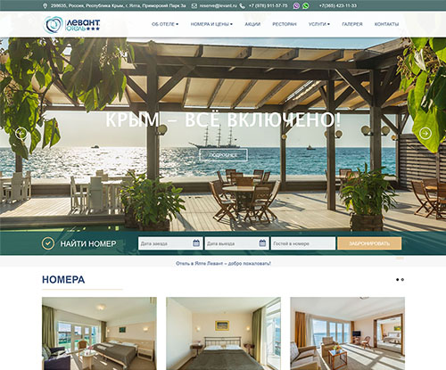 - Модули: быстрая и полная форма бронирования (заявки), новости, фотогалерея, отзывы с возможностью добавления фото, номера (товары) по категориям, карта сайта.